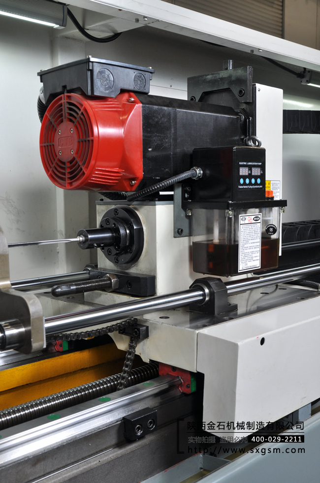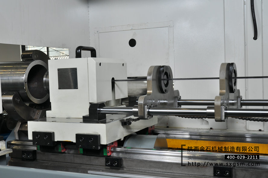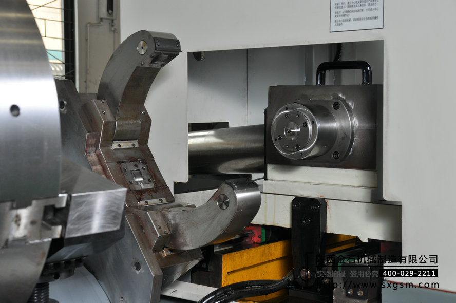 工件裝夾:工件左端用液壓卡盤夾持,右端用液壓中心架支撐。液壓卡盤和中心架可分別橫移,用于加工偏心孔。