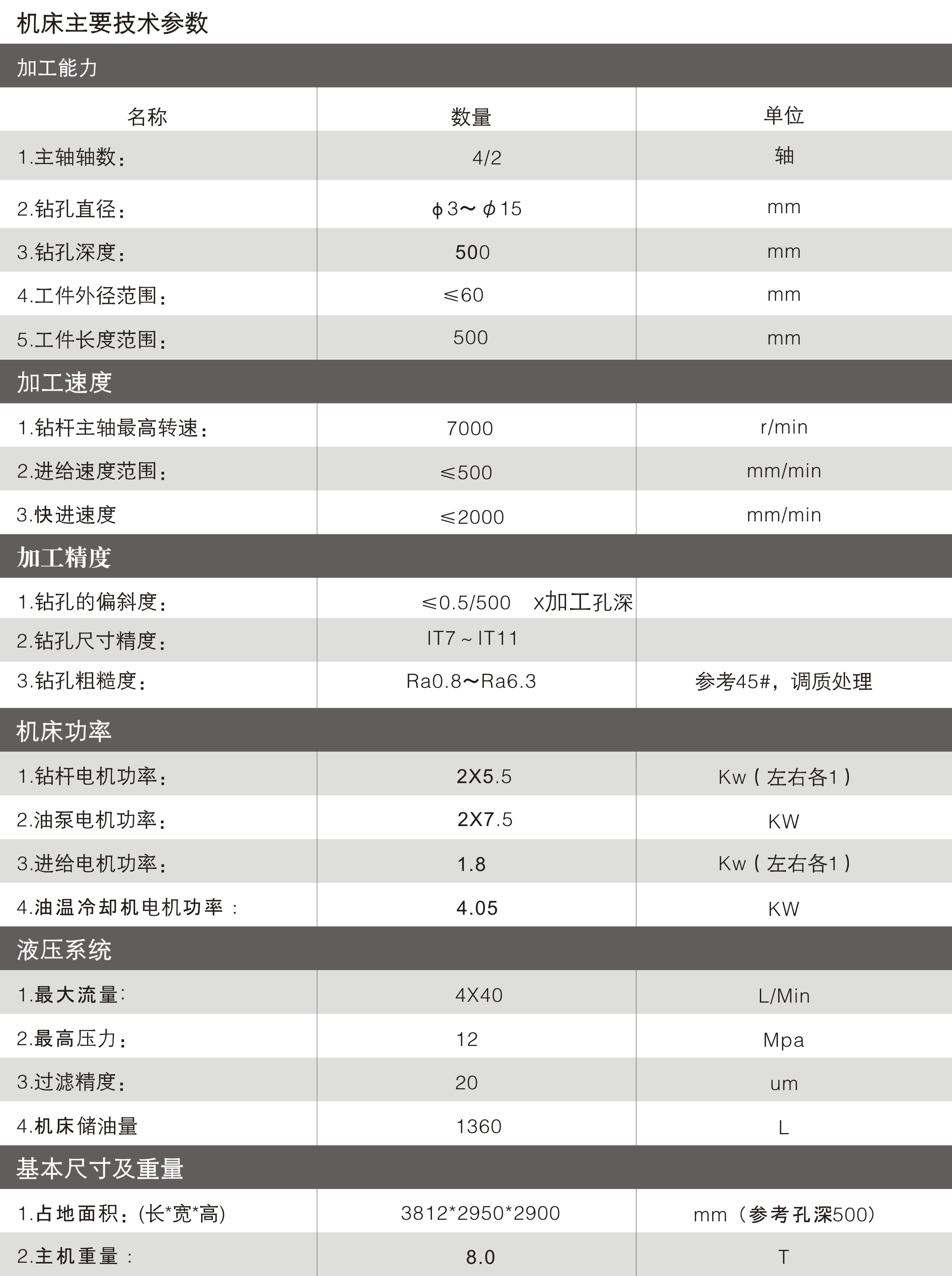 加工能力:加工孔徑范圍φ5-φ15mm 最大鉆深 500mm