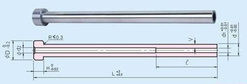 頂針、司筒是模具行業(yè)最常用零部件。頂針與司筒配合使用。司筒零件最典型的特點(diǎn)是內(nèi)孔為臺(tái)階孔,臺(tái)階孔內(nèi)徑相差0.5~1.0mm。該臺(tái)階孔的加工,是司筒零件整個(gè)加工過程中最大的難點(diǎn)。