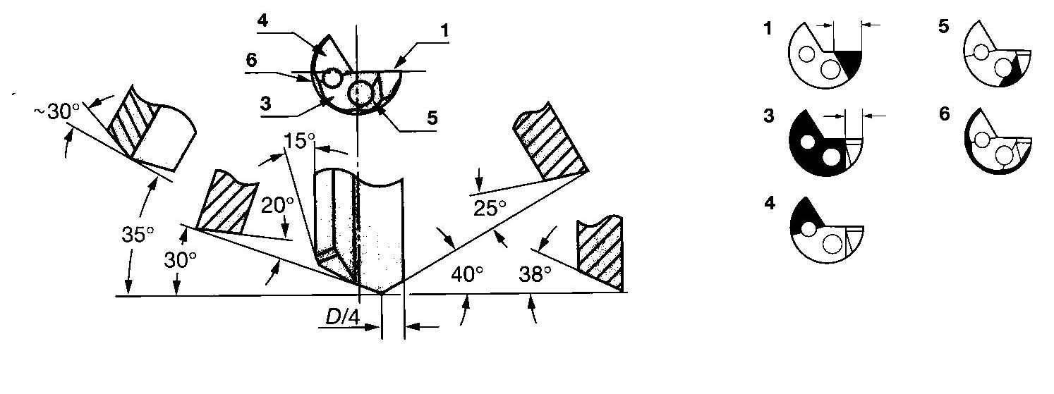 下面,對(duì)不同直徑槍鉆的刃磨角度做簡略介紹。