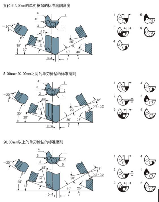 槍鉆,做為一種高效率高加工精度的孔用刀具,目前在各行各業(yè)的應用越來越廣泛。槍鉆在制造過程中,端刃刃磨角度、油隙角、倒錐角度等,對槍鉆的使用效果影響很大,下面分類加以說明。